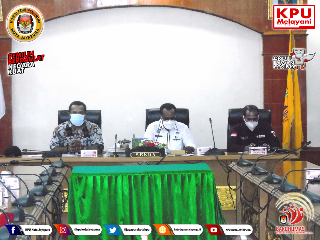 Jayapura, kota-jayapura.kpu.go.id - KPU Provinsi Papua bersama KPU Kota Jayapura melalui Mobil Klinik Data Pemilih kembali melaksanakan kegiatan lanjutan dalam upaya mendukung sukses pelaksanaan Pemutakhiran Data Pemilih Berkelanjutan (DPB) tahun 2021. Untuk wilayah Kota Jayapura kegiatan dilaksanakan di Main Hall Kantor Walikota Jayapura, Jln. Balai Kota No. 1 Entrop pada hari Jumat (10/12/2021). Turut hadir selaku pimpinan KPU Kota Jayapura, Oktovianus Injama (Ketua), Grace Dina Ursia (Anggota Divisi Perencanaan dan Data), Semuel Refasi (Anggota Divisi Teknis Penyelenggaraan), Agusta Maniagasi (Plt. Sekretaris), Linda M. Rumbiak (Kasubbag Program dan Data) beserta para Kasubbag lainnya di Lingkungan Sekretariat KPU Kota Jayapura.